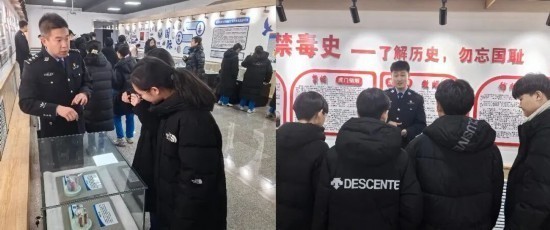 随后,民警带领全体师生有序参观了青少年禁毒教育基地,一件件仿真毒品模型吸引了师生的目光。民警结合模型细致讲解了不同毒品的外观特征、成分、危害以及伪装形式,生动的图文展板、触目惊心的案例介绍,让师生们全方位、多角度地了解了毒品的危害,进一步强化了“珍爱生命、远离毒品”的自觉意识。